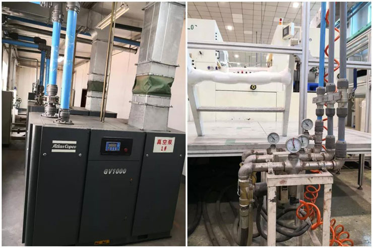 而如果將真空、鼓風(fēng)參照壓縮空氣集中供氣的形式,將分散的空壓機(jī)、復(fù)合泵、貝克泵、羅茨泵等空氣系統(tǒng)改為大型變頻空壓機(jī)、變頻螺桿真空泵、變頻無油鼓風(fēng)機(jī),實現(xiàn)集中供氣、集中控制、集中管理,上述問題將徹底解決,并可顯著降低能源消耗、降低供氣設(shè)備故障率、穩(wěn)定供氣壓力、提高生產(chǎn)效率、改善工作環(huán)境、便于管理等。本文將分享許昌海潤發(fā)科技有限公司的真空鼓風(fēng)集中供氣系統(tǒng)應(yīng)用改造,希望對大家有所幫助。